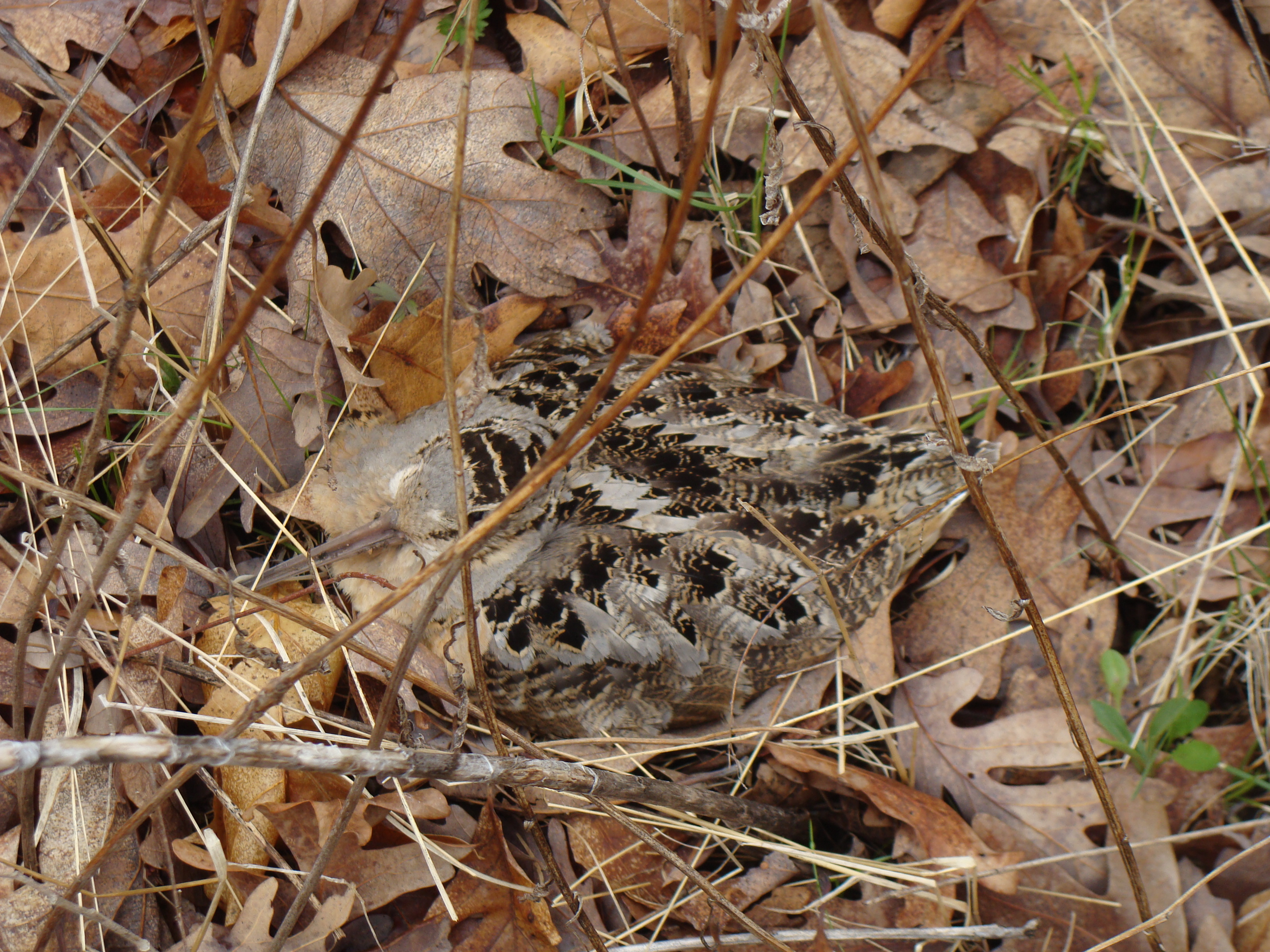 While bending down to pluck deer ticks off of my pants, I was lucky enough to spot this female woodcock on her nest at Lulu Lake SNA. I was mildly startled when she came into focus out of the leaf litter–I had almost stepped right on her. I very slowly reached for my camera and took this photo.