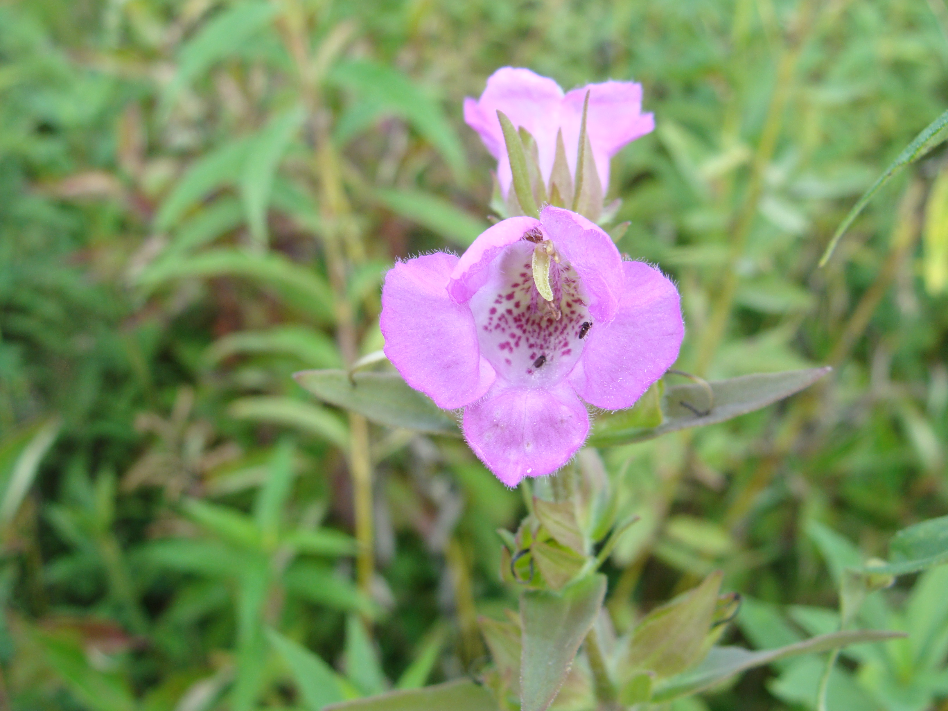 Small-flowered false-foxglove (Agalinis paupercula), an annual, is a common species in SE Wisconsin. It occurs, sometimes in great abundance, on stream banks, in fens, and in low prairies. It favors the conditions created after fires or in areas that otherwise have sparse vegetation.