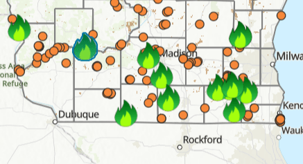 WDNR planned burns from 4/13 on their prescribed fire dashboard. Some of these are in state natural areas. They aren’t the only ones burning. These burns are well-intentioned, and those involved face very tough constraints/choices, but the grim reality is that most of these sites won’t maintain their ecological integrity if we don’t burn enough, and they won’t maintain their ecological integrity if we burn this late. With the level of resources society is willing to allocate to conservation, especially land management, I think, the footprint of our “protected” resources far exceeds our capacity to maintain.