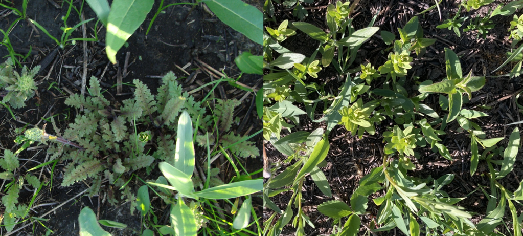 Figure 3: Views of minimally grazed/ungrazed (at least by European livestock), mesic prairie in western Iowa (left) and southeast Wisconsin (right). Note the similarity. It is only possible to differentiate them by the presence of nodding onion (Allium cernuum, left of center) in the photo on the right. All other species visible in both images are at least present at both sites at the transect (vs. plot) scale.